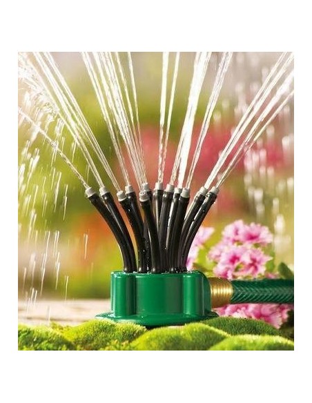 Daca locuiti la curte sau aveti nevoie sa asigurati necesarul de apa in gradina, gazon, legume, flori, etc acesta este produsul cu care puteti rezolva problema. Aspersorul dispune de 12 furtunuri flexibile, fiecare cu cate 3 orificii. Astfel, veti putea acoperi o suprafata mare la 360 grade fara niciun efort.